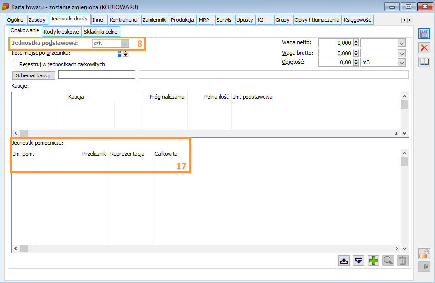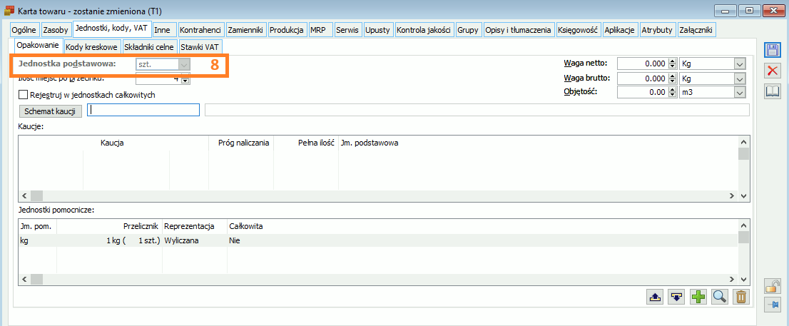 | Towary -> Edytuj towar | Waga | 44 | Edycja Zamówienia sprzedaży > Atrybuty | Waga | 36 | Wyrażone w kilogramach |