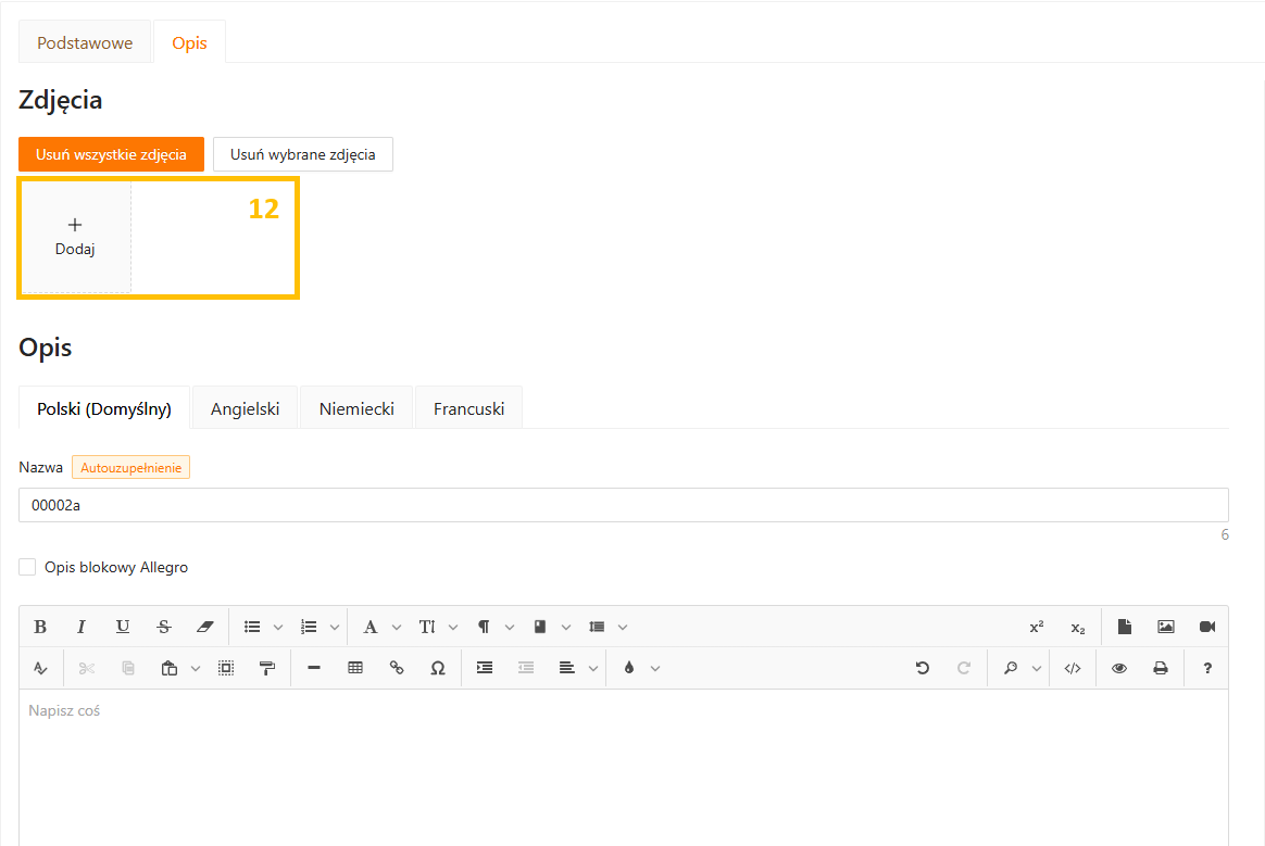 | Towary > Edytuj towar > Zdjęcia | Zdjęcia | 12 | Ogólne > Towary > Edycja karty towaru > Załączniki | Załączniki | 11 | Typ załącznika – Obraz |