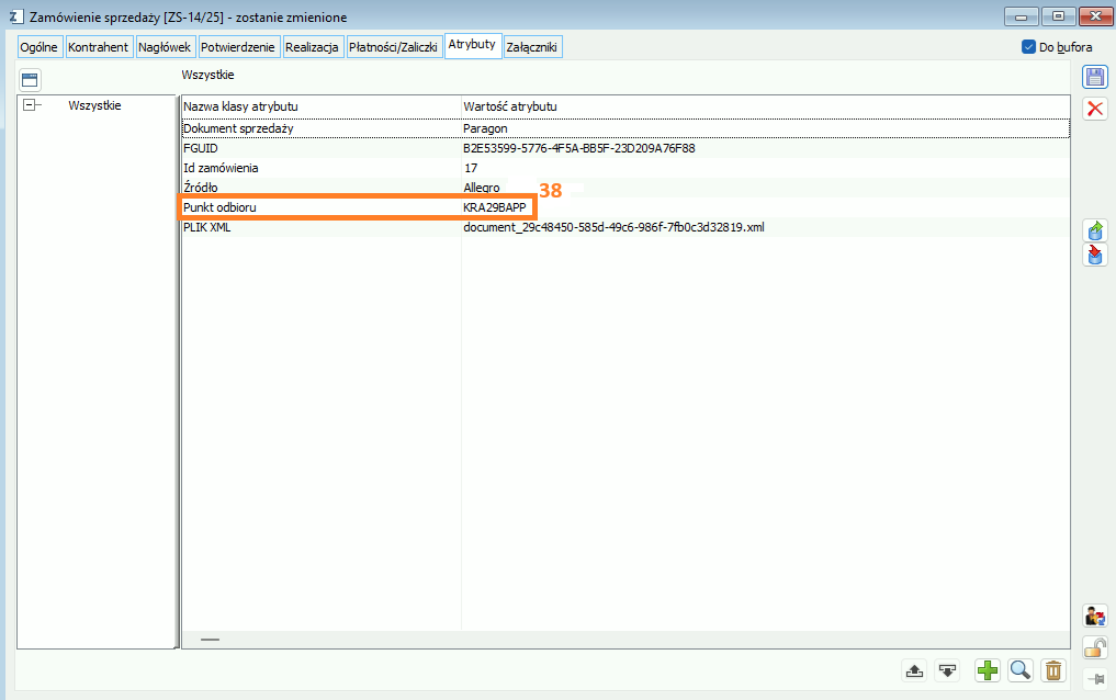 | Edycja zamówienia > Formularz zamówienia | FGUID | 1 | Edycja Zamówienia sprzedaży > Atrybuty | Atrybut | 36 | |