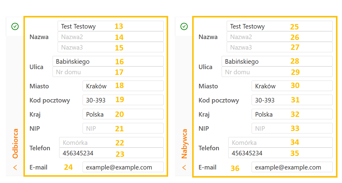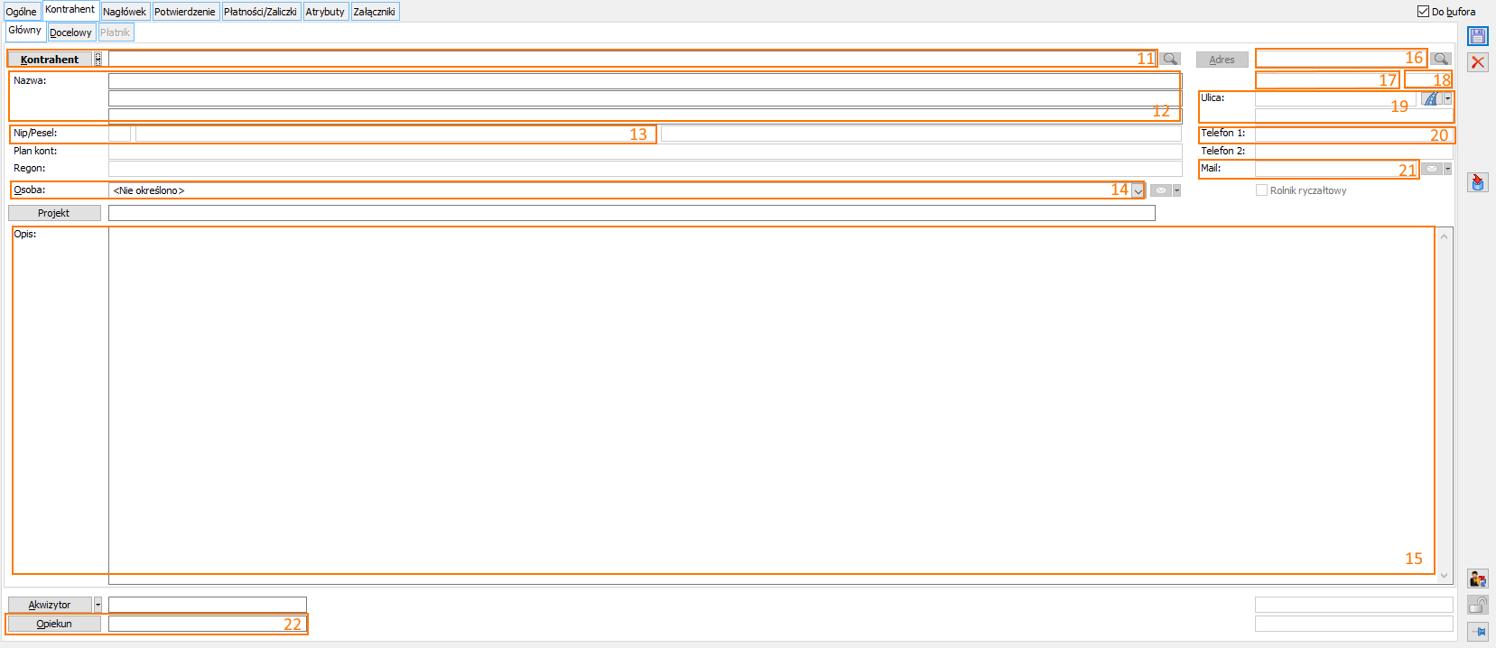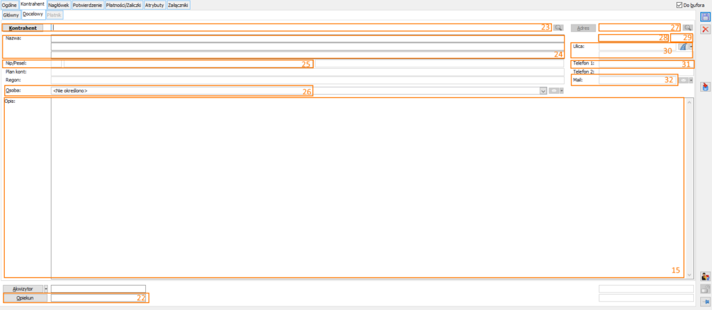 | Edycja zamówienia > Formularz adresu > Nabywca | 36 | Edycja Zamówienia sprzedaży > Kontrahent | 21 | |||