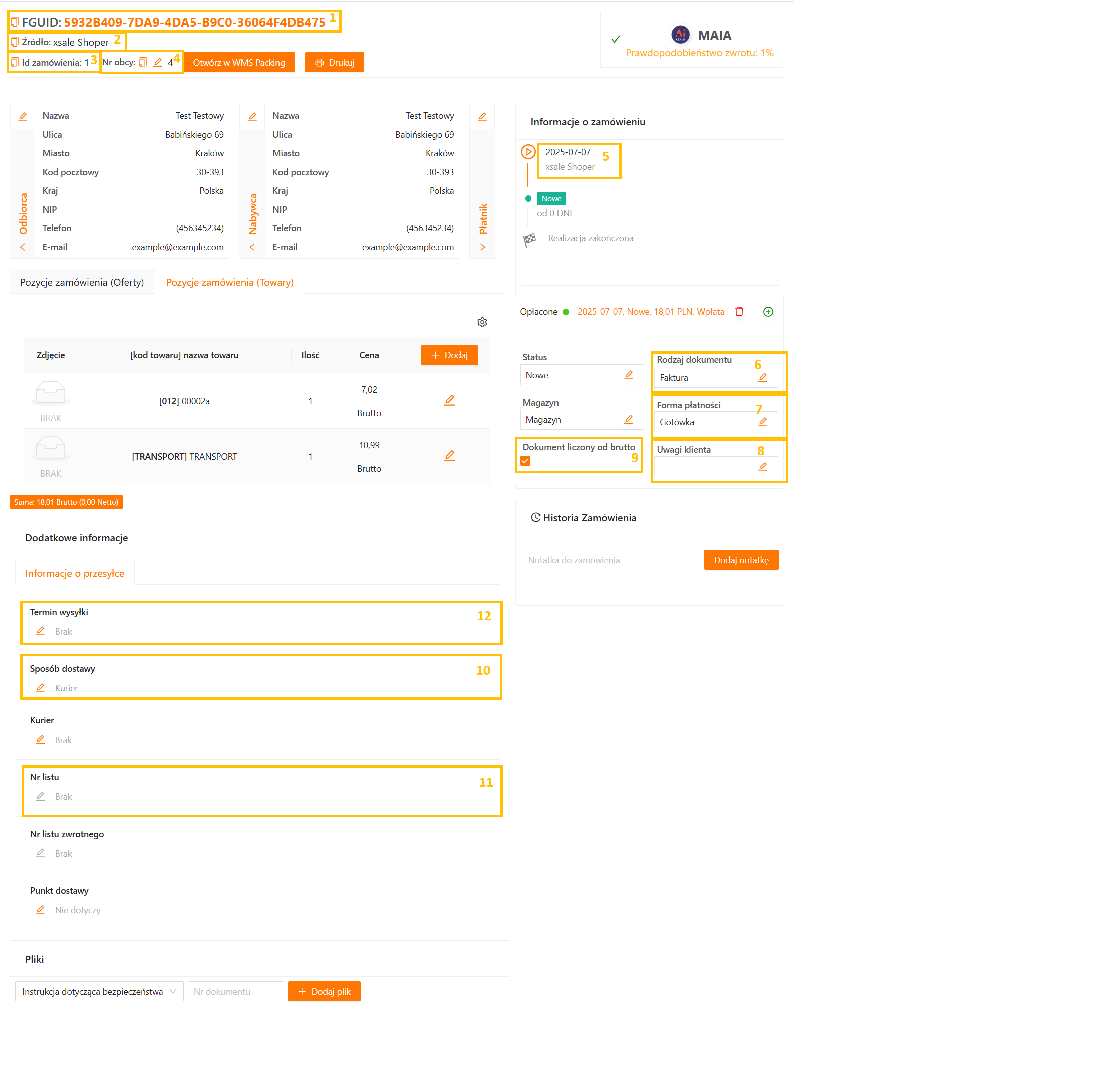 | Edycja zamówienia > Formularz zamówienia | Rodzaj faktury | 6 | Edycja Zamówienia sprzedaży > Atrybuty | Atrybut | 36 | |