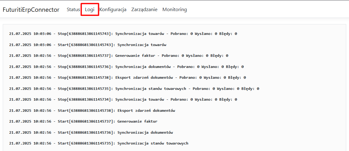 Podczas przesyłania zamówienia do ERP xSale zapisuje przebieg integracji po stronie Futuriti Connector. To właśnie tam znajdziesz komunikaty zwrócone przez Subiekta (np. walidacje danych, błędy dokumentów, problemy z kartotekami).