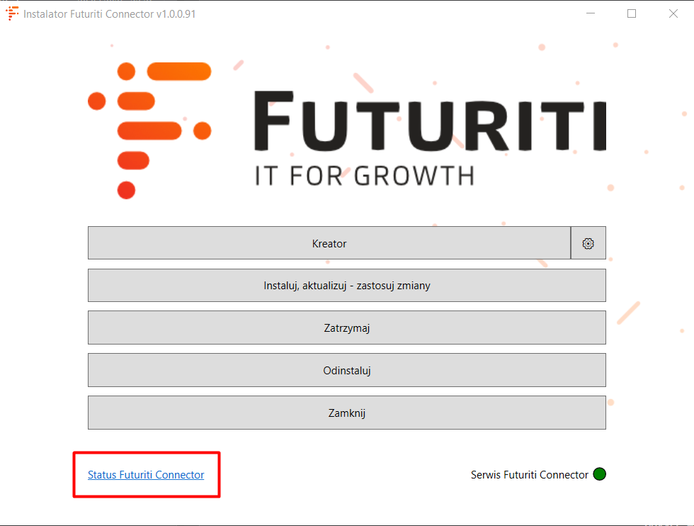 - Uruchom aplikację Futuriti Connector i kliknij Status Futuriti Connector.