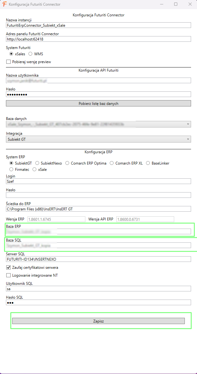 5. Instrukcja zmiany bazy Subiekt GT w Futuriti Connector