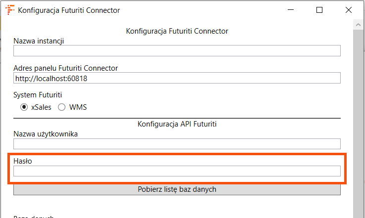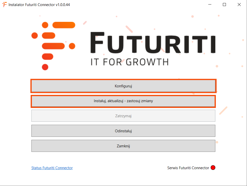 • Otwórz konfigurator Connector w C:\!Futuriti_Programy\FuturitiErpConnectorInstaller_Update_(wersja)\FuturitiErpConnectorInstaller.exe