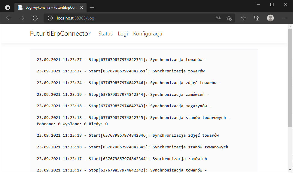 Status Futuriti Connector(Strona domyślnie dostępna jest na maszynie, na której został zainstalowany konektor)