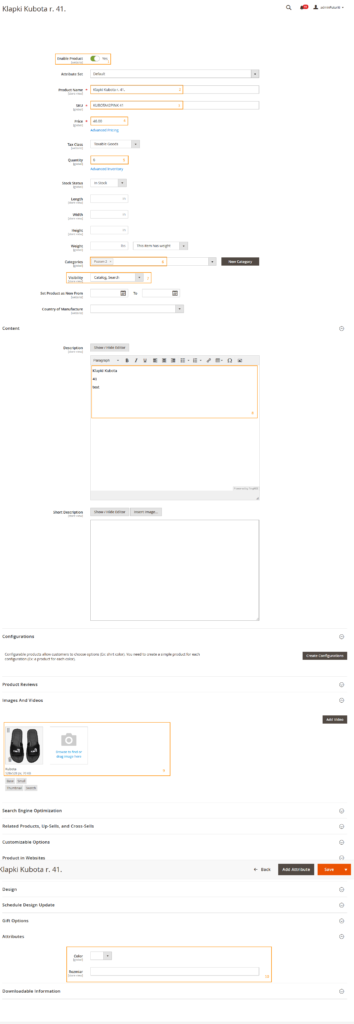 - Pierwsza oferta z danym kodem zostaje dodana do Magento jako nowy produkt.