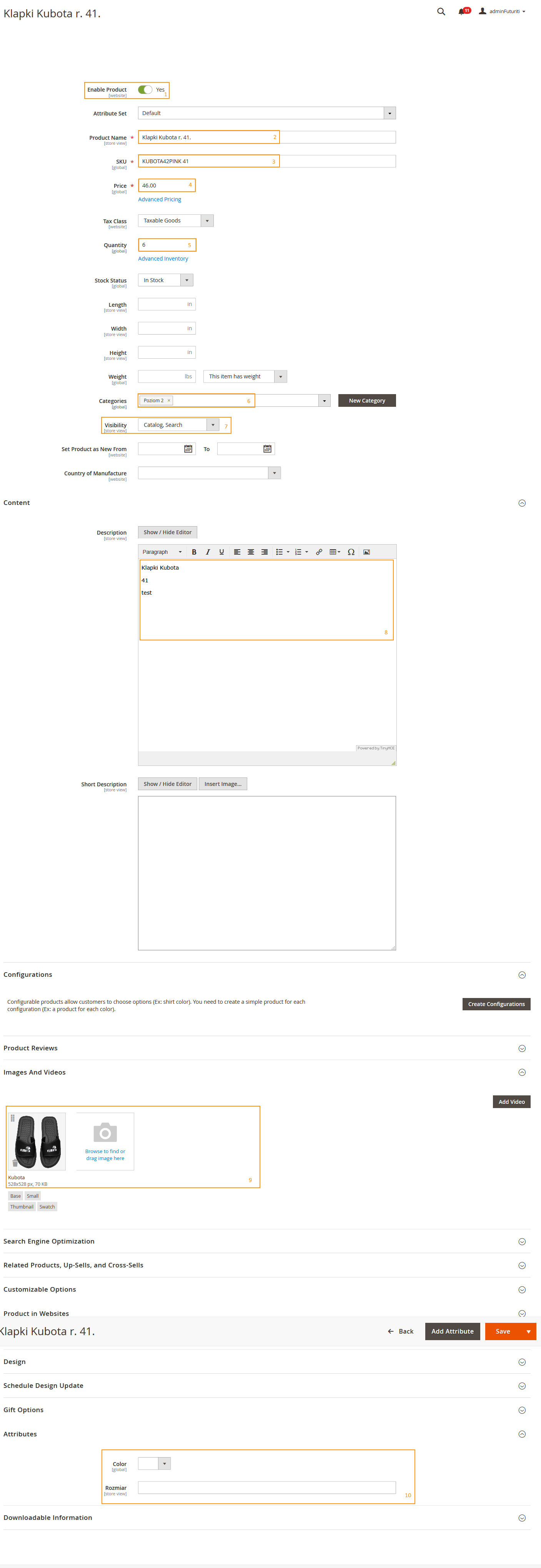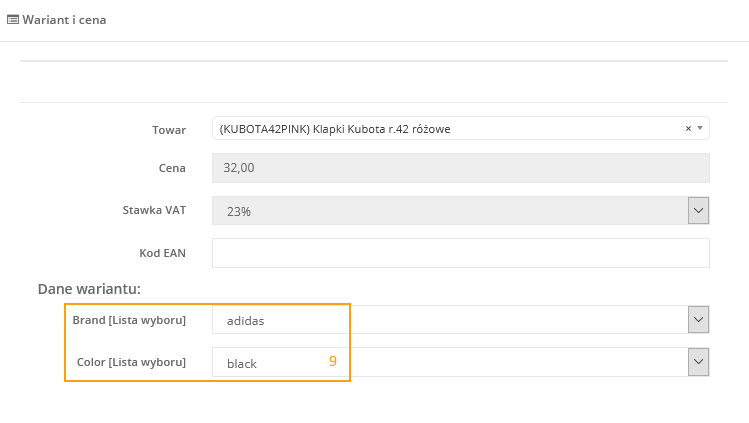 | Warianty i ceny > Wariant > Dane wariantu > Wariant *tylko dla wielowariantowej | 9 | Attribute | 10 | |