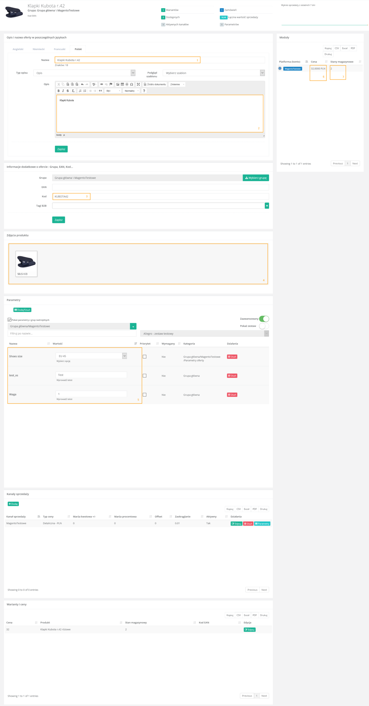 | Warianty i ceny > Wariant > Stan magazynowy towaru | 7 | Quantity | 5 | |