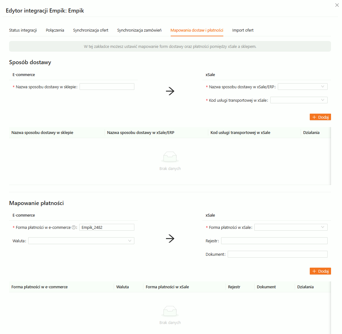 - Mapowania dostaw i płatności