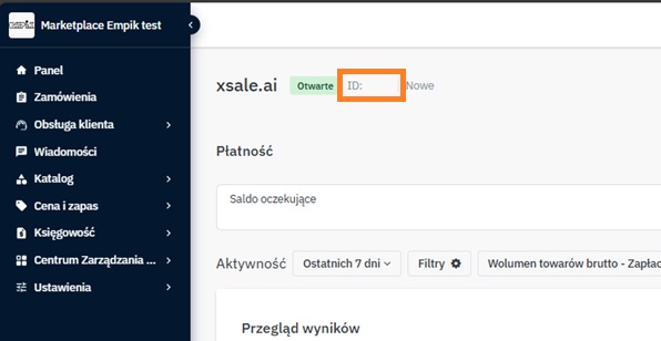 Należy wejść na główny widok dashboardu marketplace i odszukać pole ID – jest to ID magazynu, który należy uzupełnić w kreatorze.