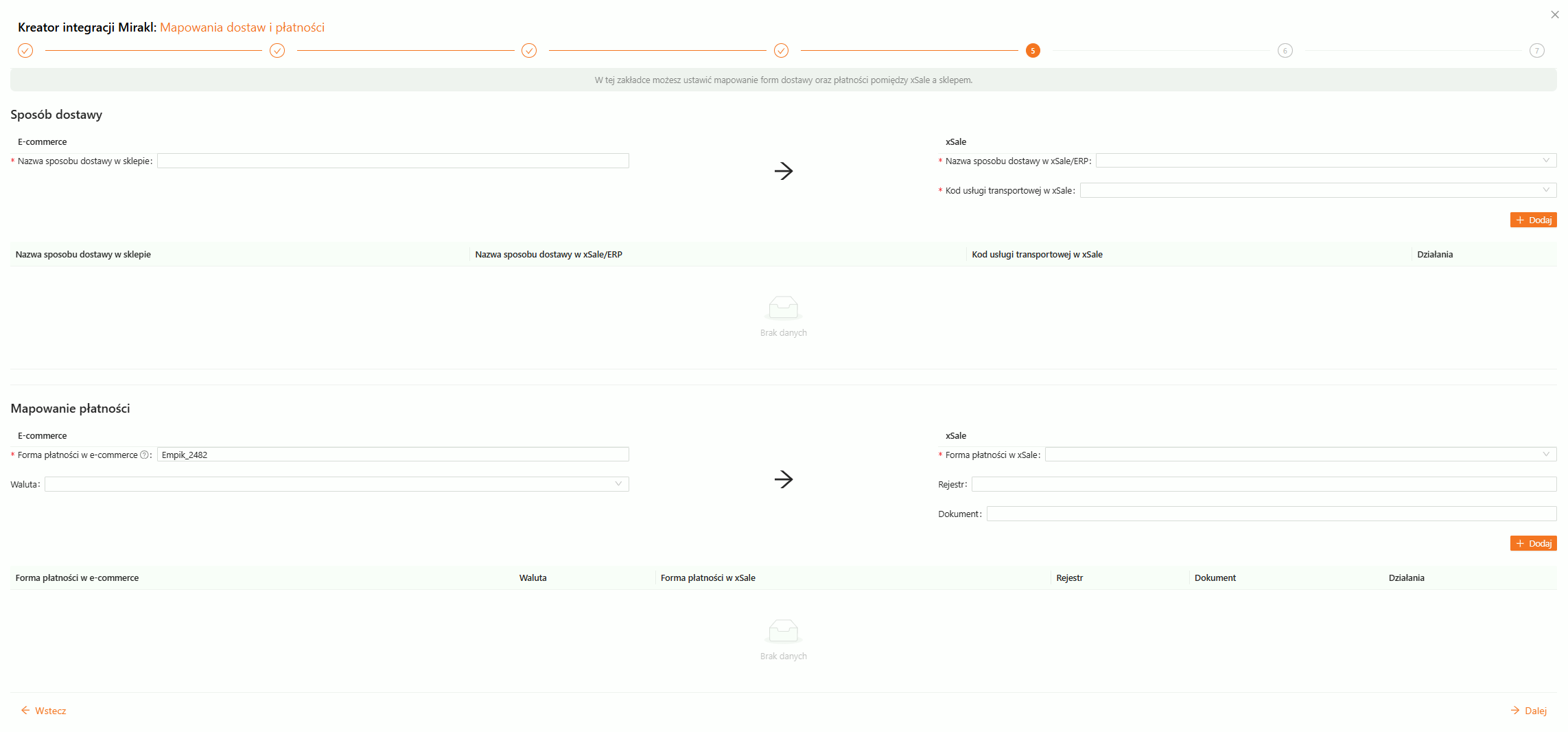 KROK 5. Mapowania dostaw i płatności