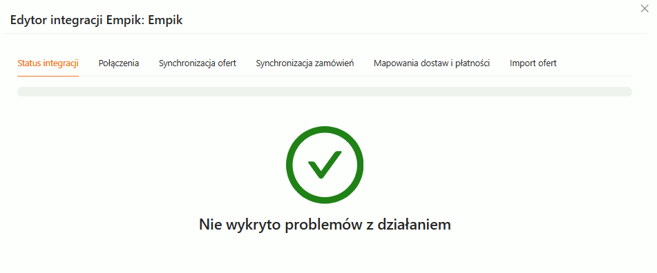 Sekcja, która informuje o statusie i ewentualnych błędach związanych z integracją.