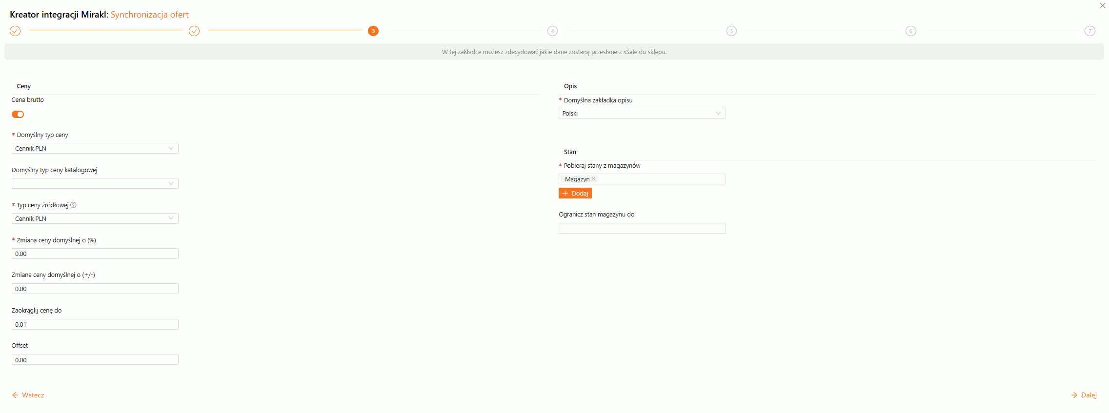 - Synchronizacja ofert – możliwość edycji danych, które były uzupełnianie w 3 kroku integracji.