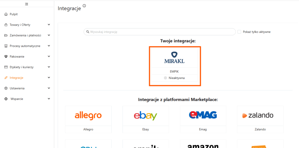 Po przejściu wszystkich kroków nastąpi aktywacja integracji z wybranym marketplace Mirakl. Stanie się ona widoczna w sekcji Twoje integracje.