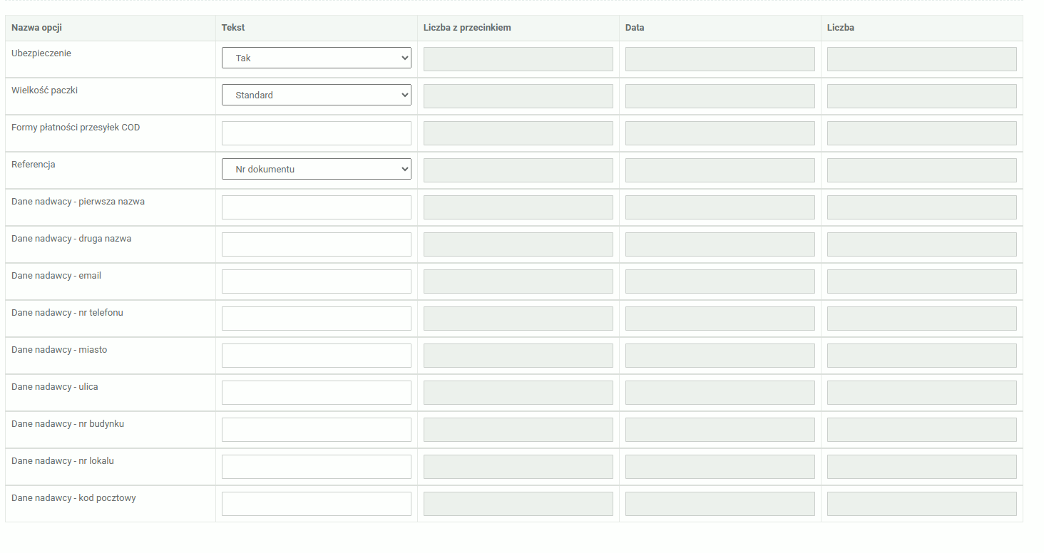 Wprowadzone dane będą wykorzystywane zarówno przy automatycznym tworzeniu przesyłek, jak i podczas ręcznego generowania listów przewozowych (z możliwością edycji parametrów w pojedynczej przesyłce).