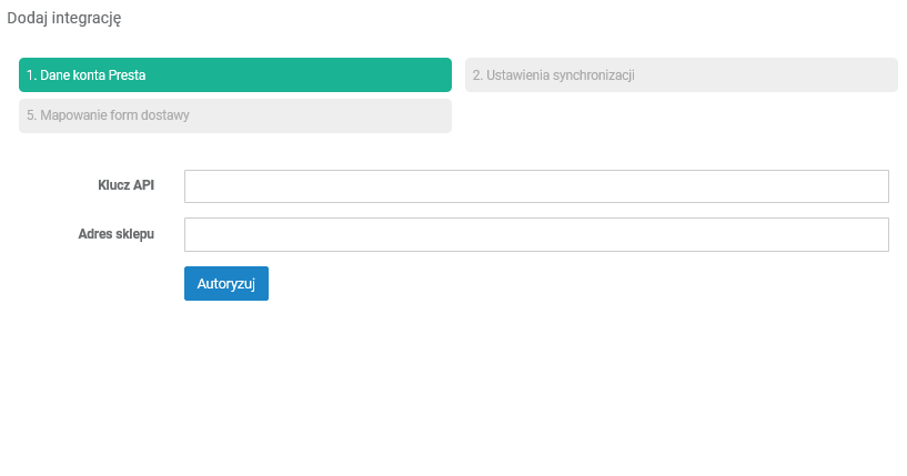 - Nazwę integracji (zalecamy „Presta_NazwaSklepu”)