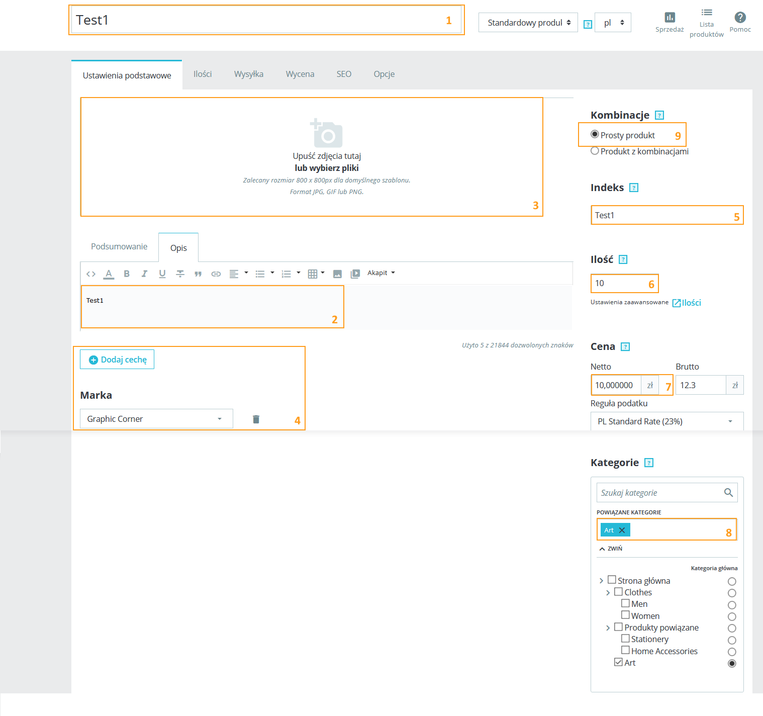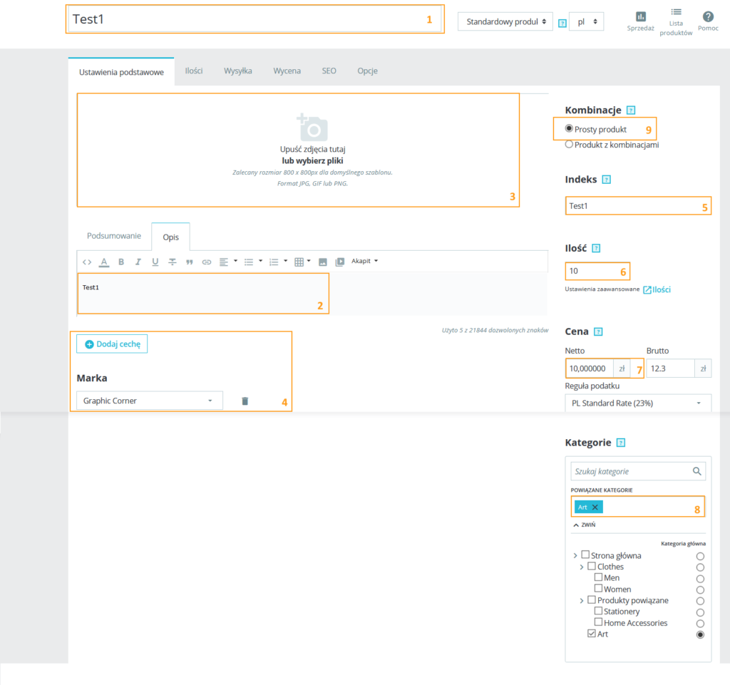 | Oferta -> Edycja -> Kanały sprzedaży -> Presta (Edycja) | Grupy | 7 | Katalog > Produkty > Edycja > Ustawienia podstawowe | Kategorie | 8 | |