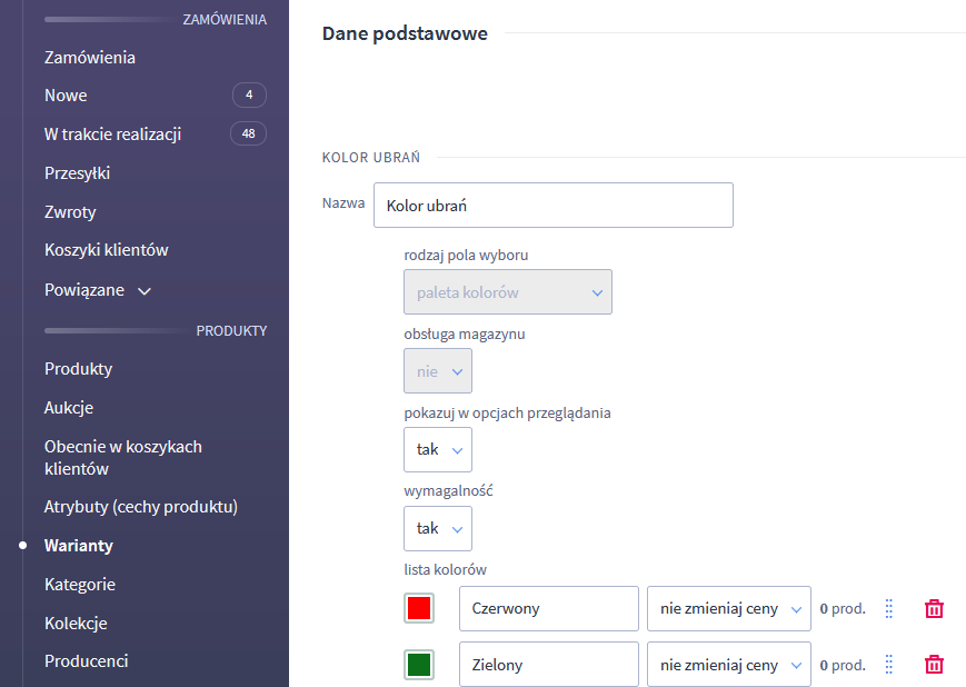 Taki komunikat pojawia się w momencie gdy warianty podpięte nie mają włączonej obsługi magazynów. Poniżej zrzut ekranu przedstawiający to ustawienie w Shoper