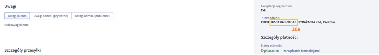 | Punkt dostawy | 26a | *W przypadku korzystania z dodatkowej wtyczki Orlen Paczka, pobierany jest tylko kod punktu odbioru. | ||||