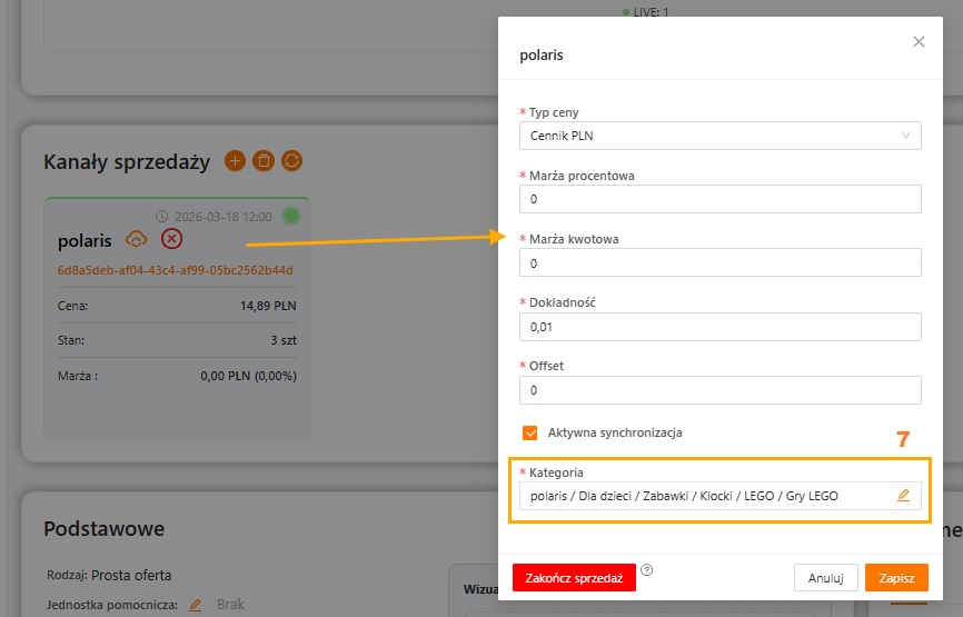 | Oferta -> Edycja -> Kanały sprzedaży – > Shoper | Status (kropka) | 16 | Produkty > Edycja > Dane podstawowe | Aktywność | 3 | Pole automatycznie zaznaczone |