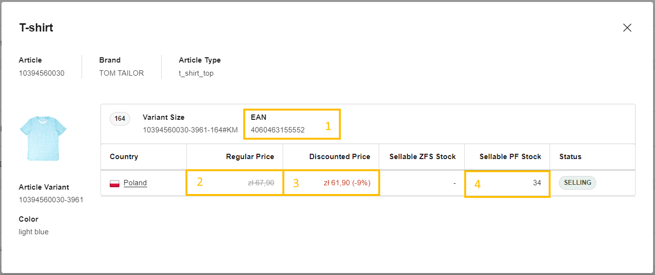 Szczegółowy zakres danych przesyłanych z xSale do Zalando Connected Retail