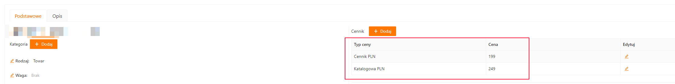 - Otwieramy do edycji ofertę, w której chcemy dodać cenę katalogową