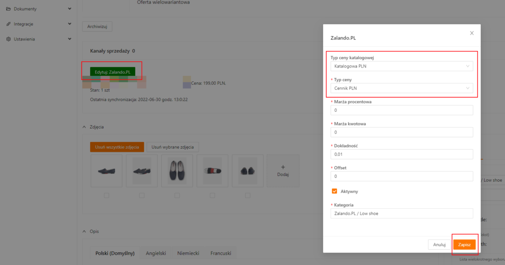 - Edytujemy ofertę w xSale, która jest powiązana z produktem w Zalando