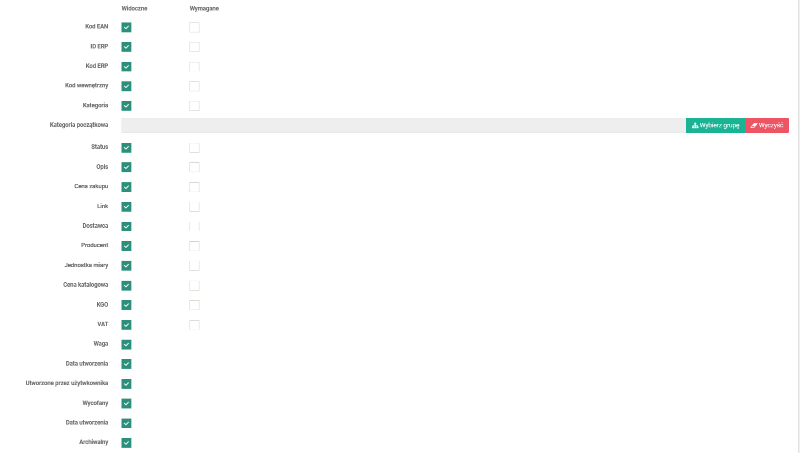 W tym miejscu możesz zaznaczyć, które pola mają być wyświetlane podczas edycji towaru w xSale.