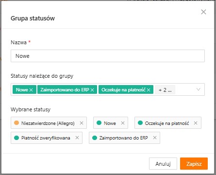 Używanie grup statusów na liście zamówień