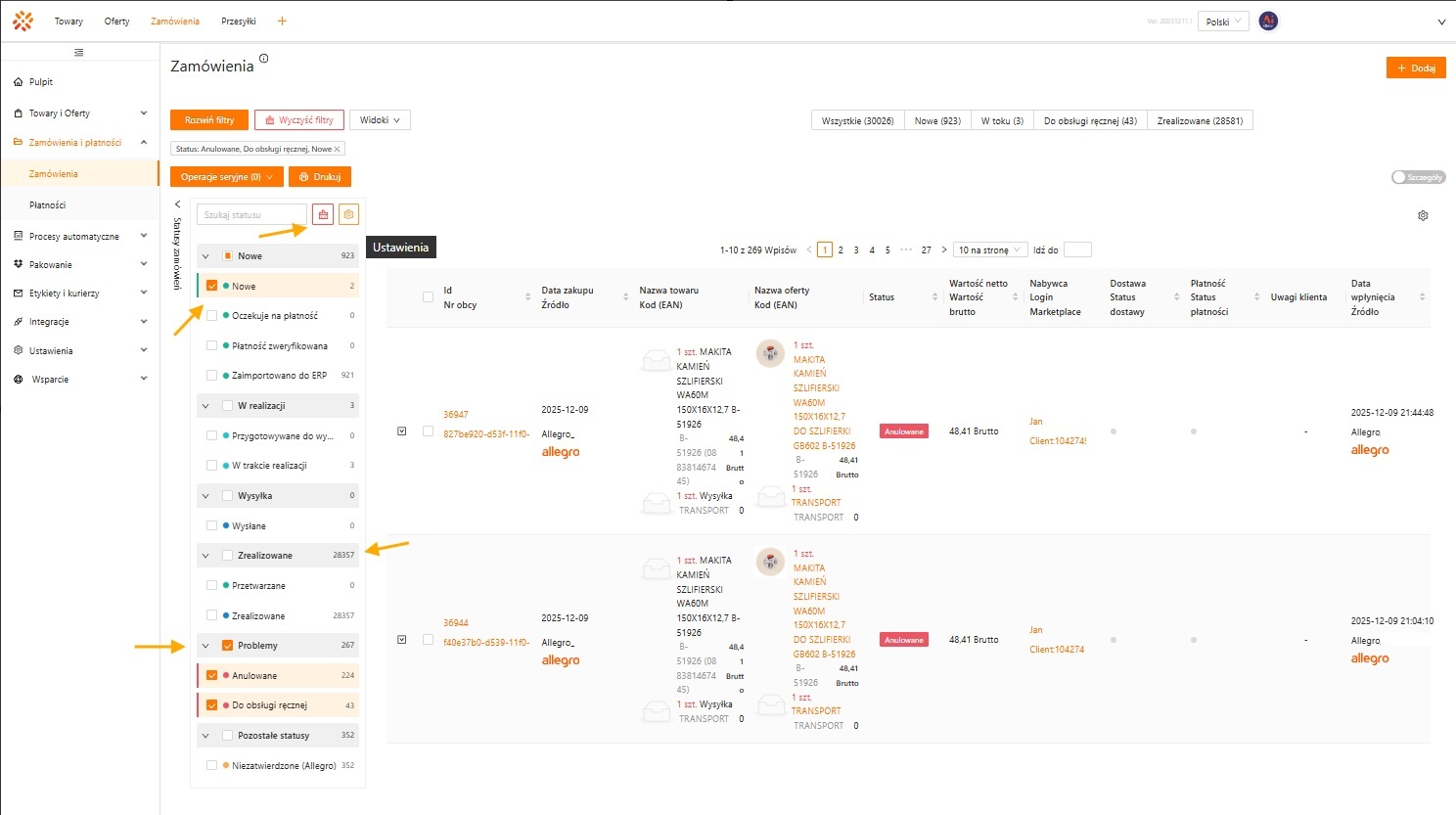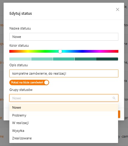 - jak grupy statusów działają na liście zamówień