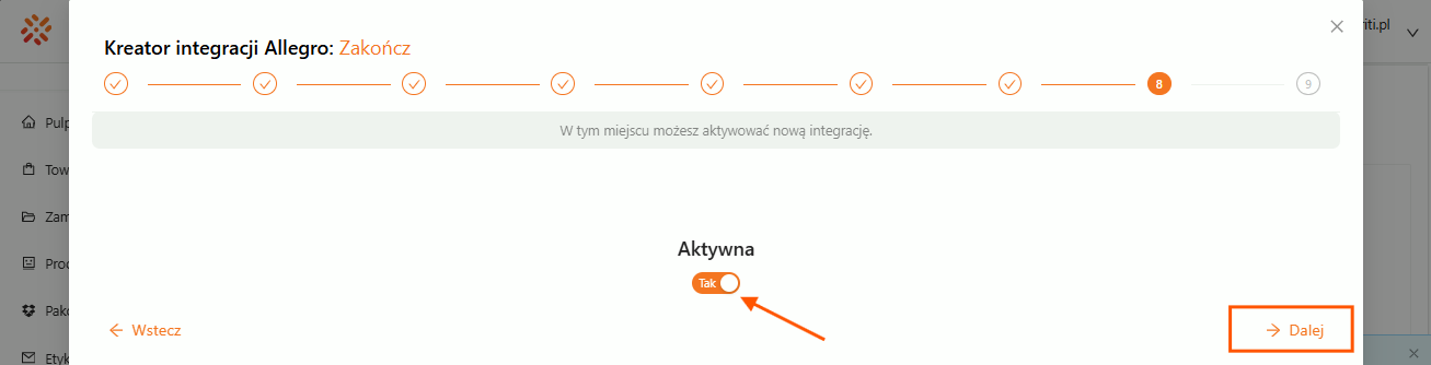 Krok 11. Ważne: zaznacz, że integracja ma być aktywna. |