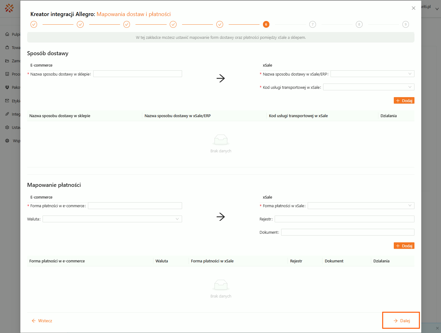 - Wrócić do mapowań dostaw i płatności — można je uzupełnić później, gdy masz już dane w systemie.