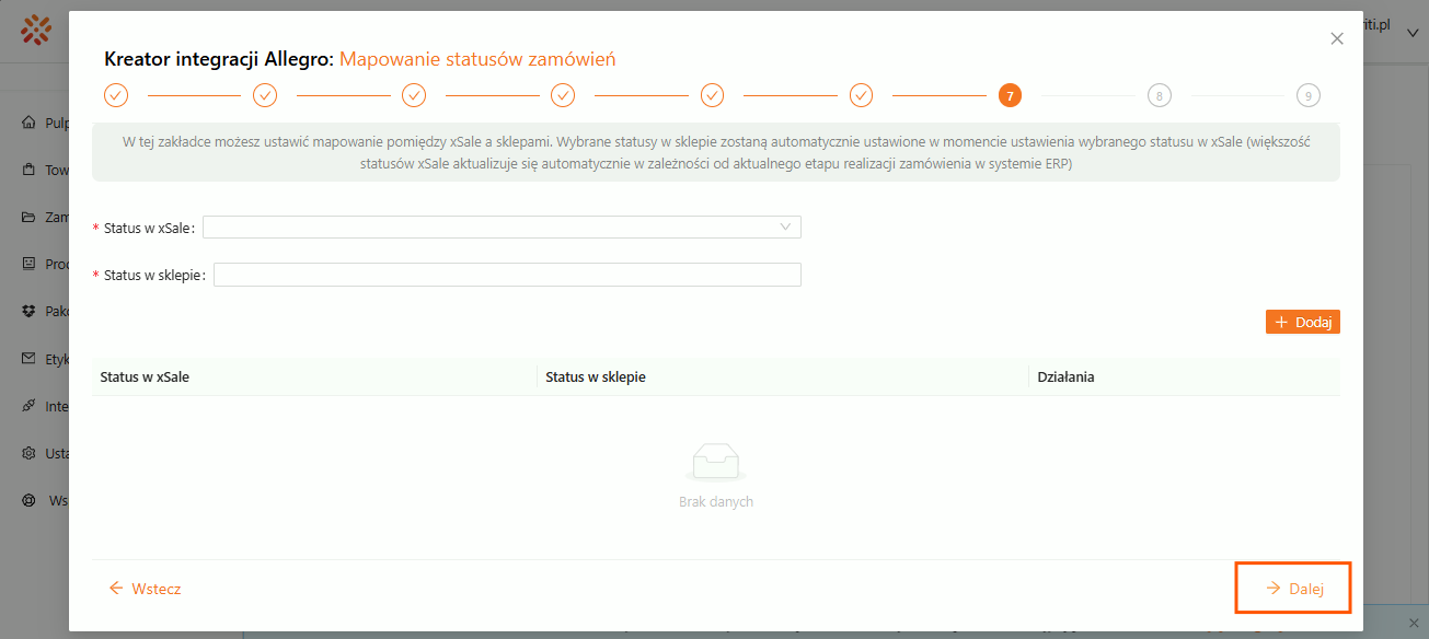 Krok 10. Mapowanie statusów zamówień na tym etapie można pominąć — uzupełnisz je później. |