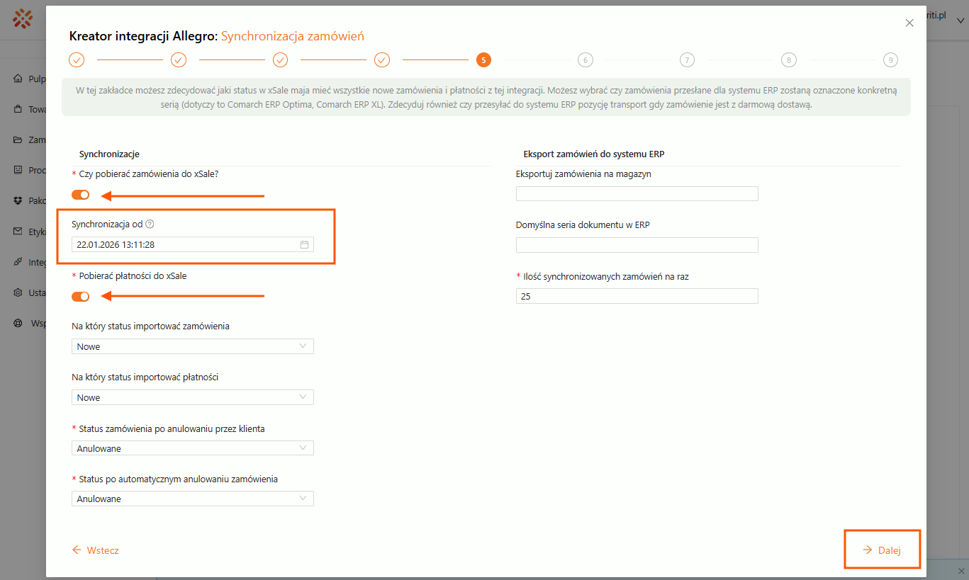 Krok 8. Warto sprawdzić zaznaczenia i datę, żeby od razu zobaczyć pobrane zamówienia. |