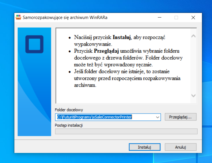 Instalacja aplikacji przebiega w sposób automatyczny. Po uruchomieniu instalatora wystarczy postępować zgodnie z instrukcją w kreatorze.