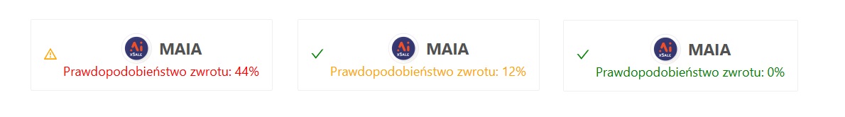 Wartość jest wyliczana przez usługę AI MAIA. Po otwarciu zamówienia xSale przekazuje do mechanizmu predykcji dane związane z tym zamówieniem, a następnie odbiera wynik w postaci prawdopodobieństwa zwrotu.