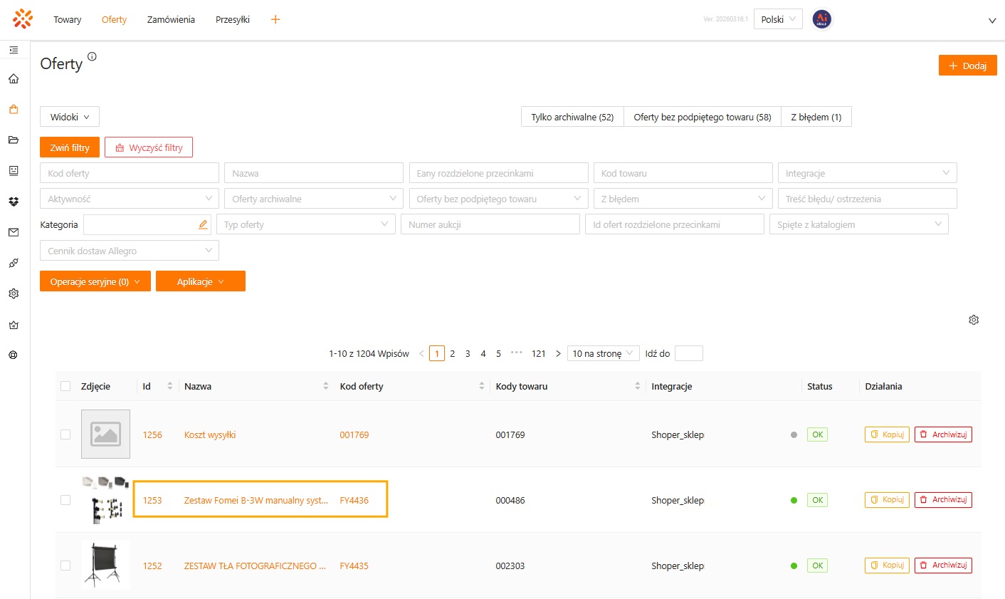 - Na ofercie prostej zobaczysz towar podłączony do oferty.
