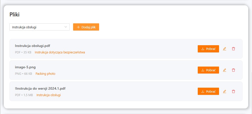 To pomocna sekcja porządkowa, szczególnie wtedy, gdy oferta wymaga dodatkowych plików technicznych, instrukcji lub innych dokumentów wykorzystywanych w pracy wewnętrznej.