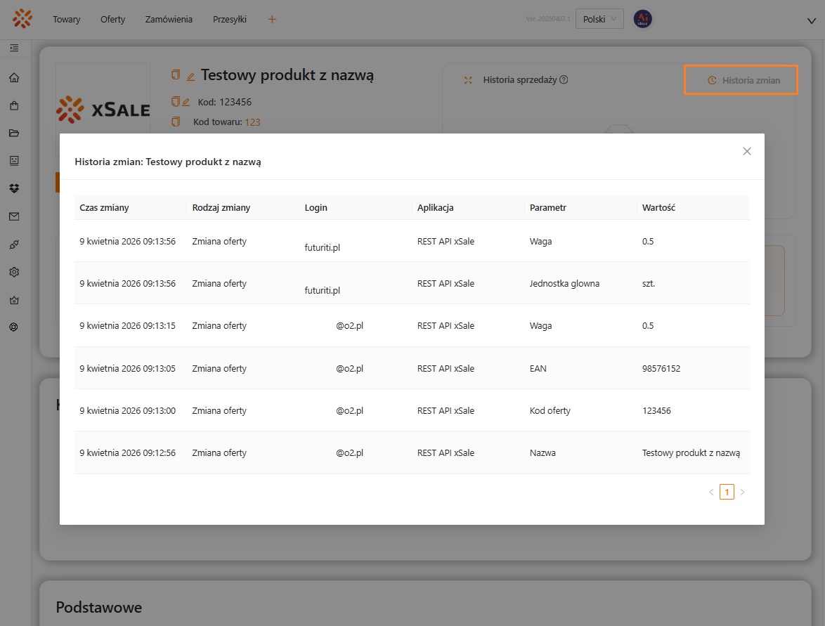 Na karcie oferty dostępna jest także sekcja Historia zmian. To w tym miejscu możesz sprawdzić, jakie zmiany zostały wykonane na ofercie.