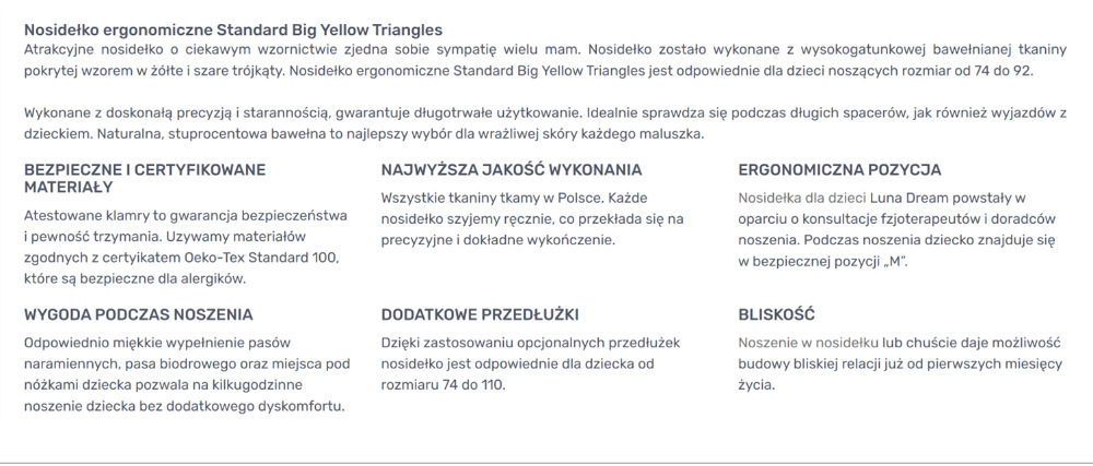 Oto bardzo rozbudowany opis nosidełka w sklepie Luna Dream. Tekst powstał z myślą o mamach.