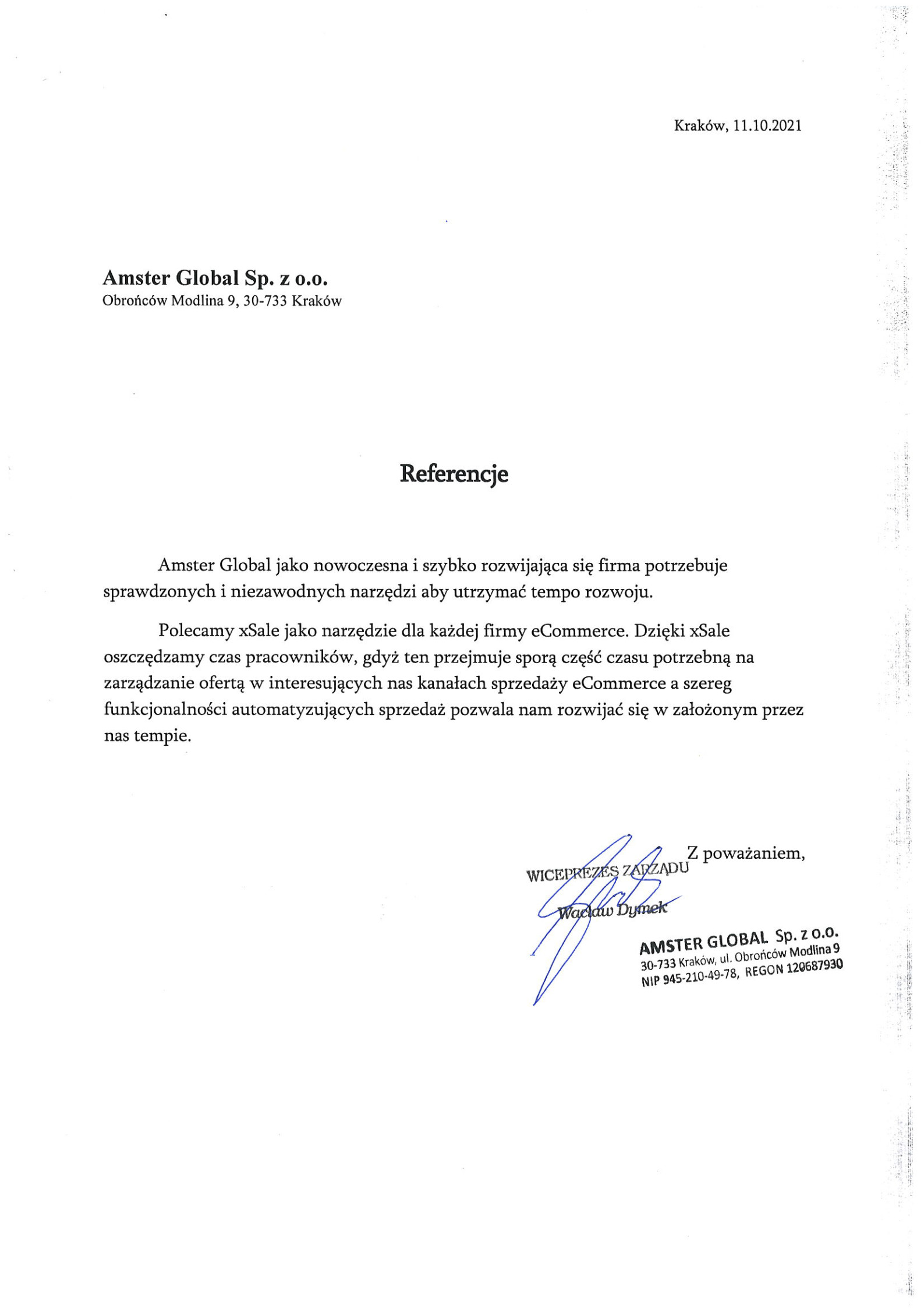Amster Global jako nowoczesna i szybko rozwijająca się firma potrzebuje sprawdzonych i niezawodnych narzędzi aby utrzymać tempo rozwoju. Polecamy xSale jako narzędzie dla każdej firmy eCommerce. Dzięki xSale oszczędzamy czas pracowników, gdyż ten przejmuje sporą część czasu potrzebną na zarządzanie ofertą w interesujących nas kanałach sprzedaży eCommerce a szereg funkcjonalności automatyzujących sprzedaż pozwala nam rozwijać się w założonym przez nas tempie.