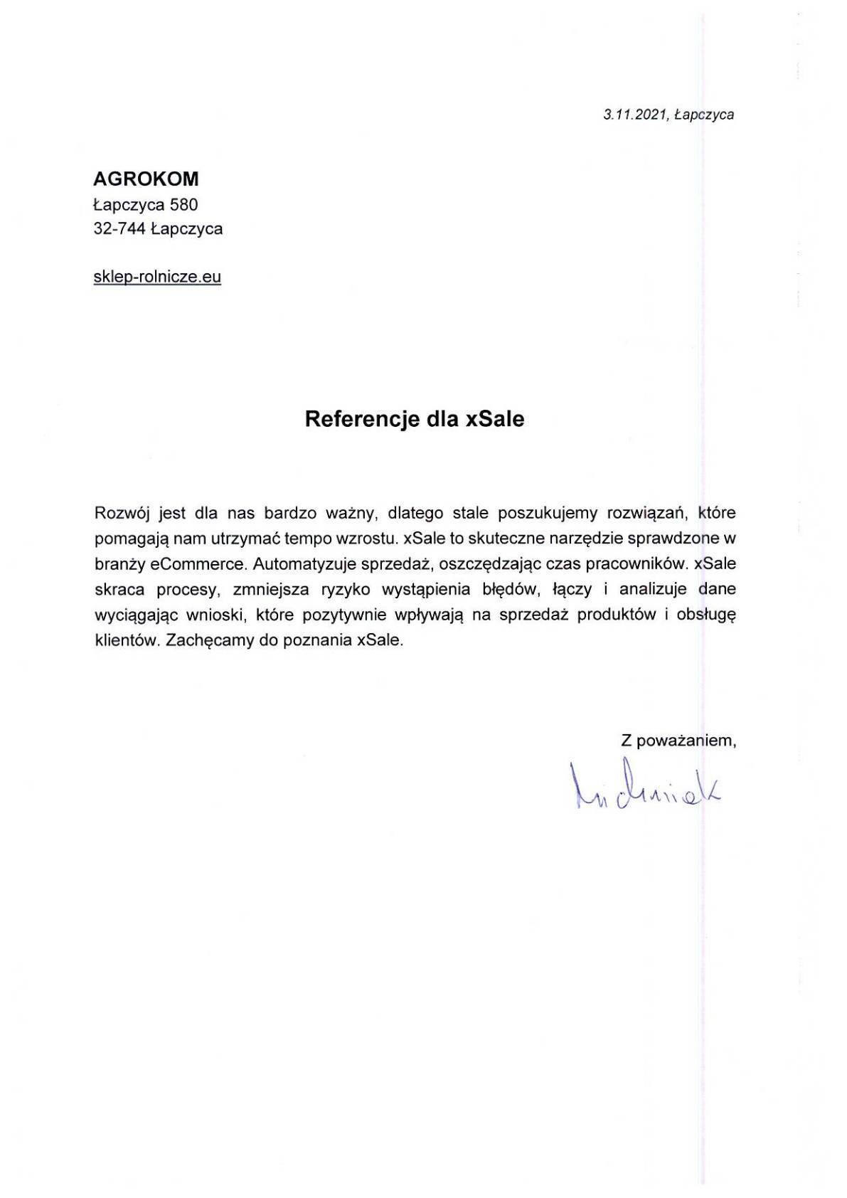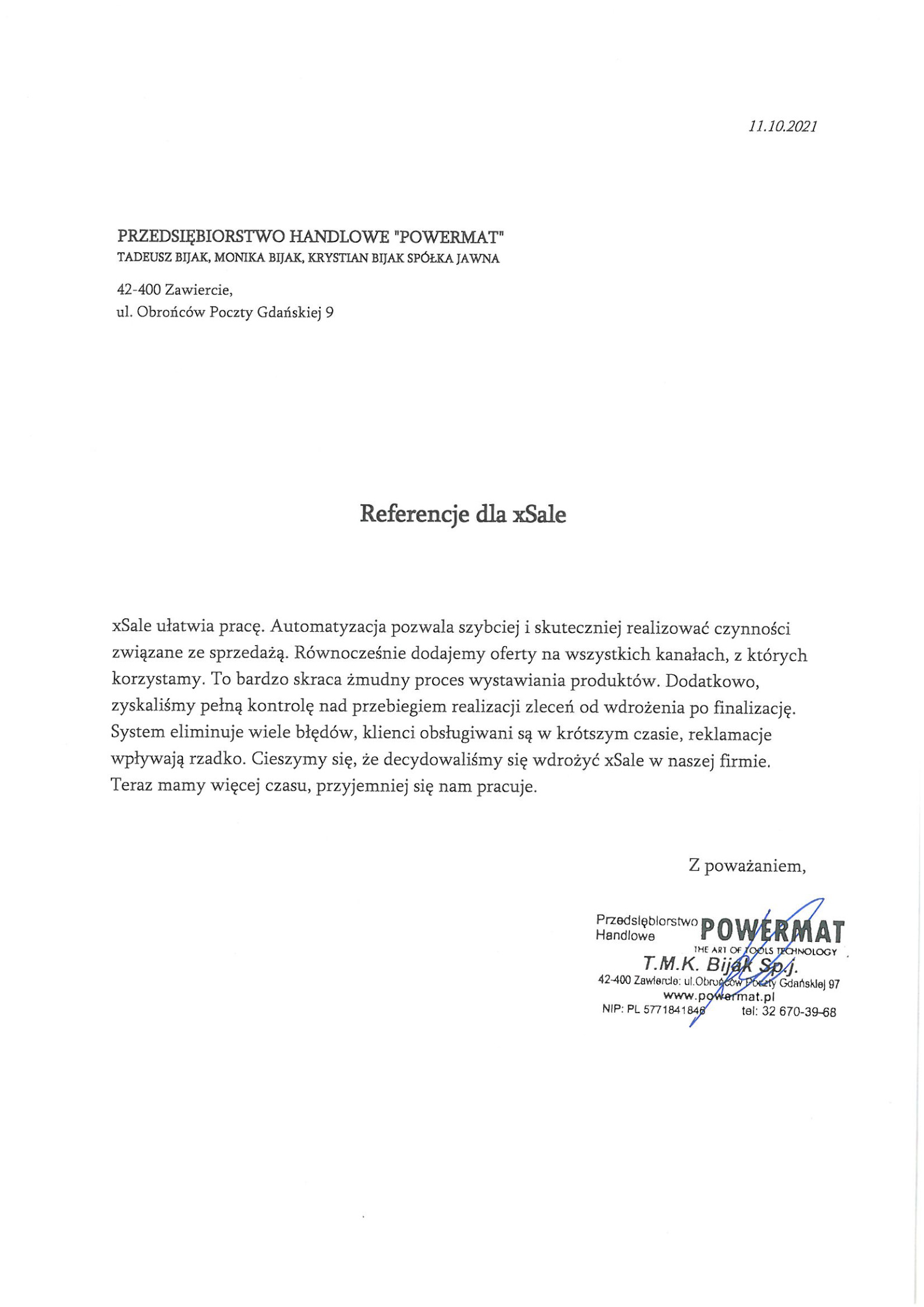 Rozwój jest dla nas bardzo ważny, dlatego stale poszukujemy rozwiązań, które pomagają nam utrzymać tempo wzrostu. xSale to skuteczne narzędzie sprawdzone w branży eCommerce. Automatyzuje sprzedaż, oszczędzając czas pracowników. xSale skraca procesy, zmniejsza ryzyko wystąpienia błędów, łączy i analizuje dane wyciągając wnioski, które pozytywnie wpływają na sprzedaż produktów i obsługę klientów. Zachęcamy do poznania xSale.